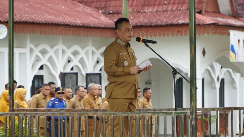 Selingga.com (05/01) Daik. Bupati Lingga Muhammad Nizar, S.Sos., memimpin apel gabungan perdana Pemerintah Kabupaten Lingga di halaman Kantor Bupati Lingga, Daik, Senin (5/1) pagi. Apel diikuti oleh Wakil Bupati Ir. H. Novrizal, S.T., M.IP., seluruh kepala Organisasi Perangkat Daerah (OPD), pejabat eselon, dan Aparatur Sipil Negara (ASN) di lingkungan Pemkab Lingga.